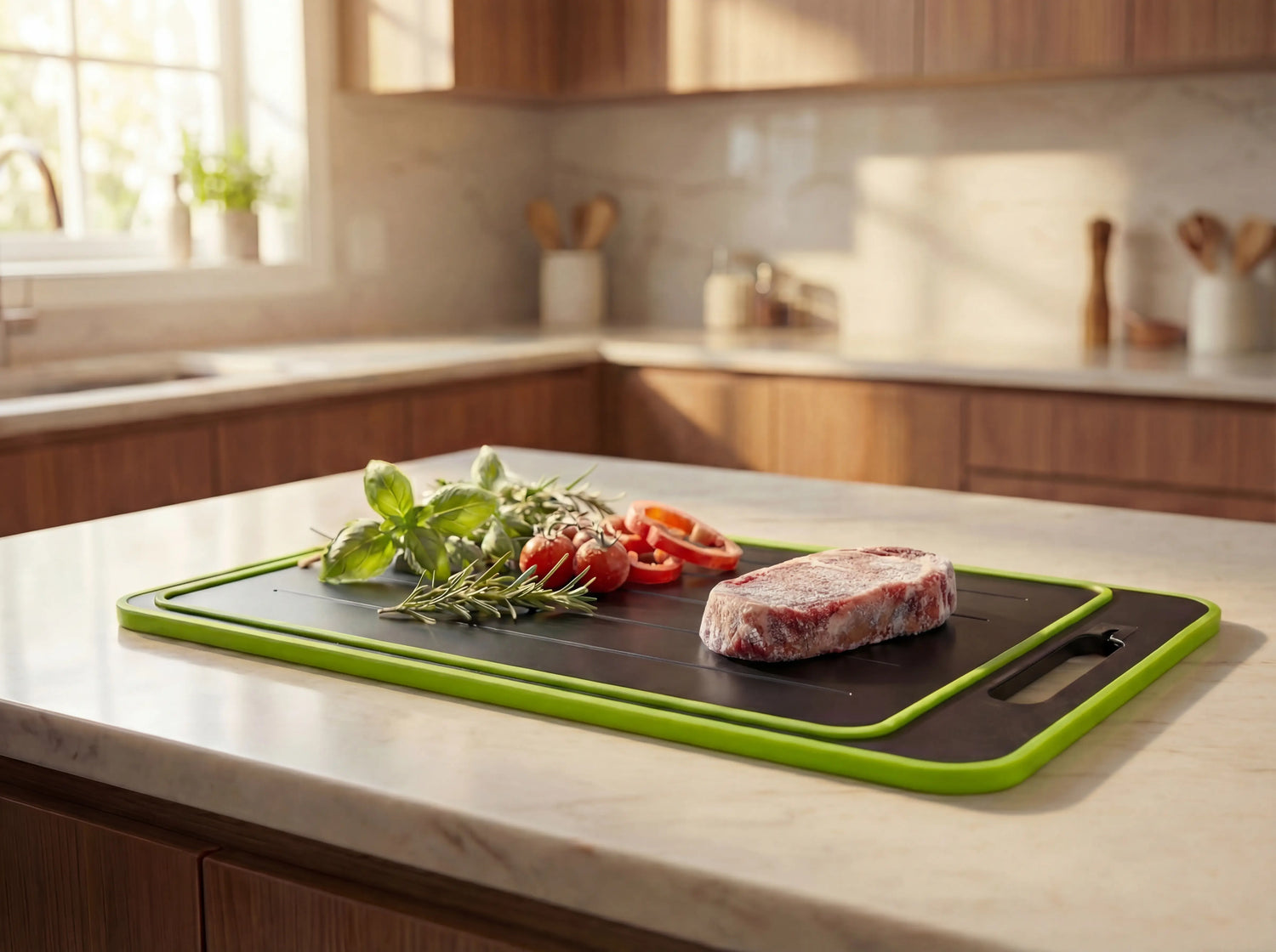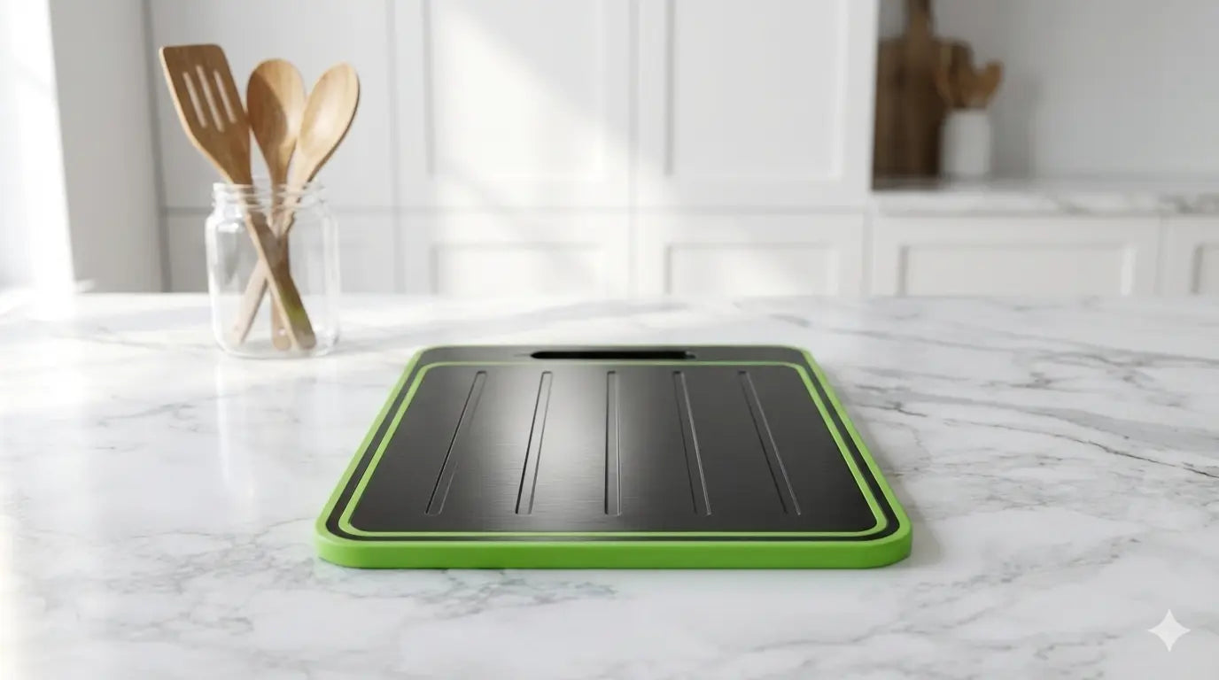 A smarter cutting board designed for everyday prep — from safe cutting to natural defrosting.